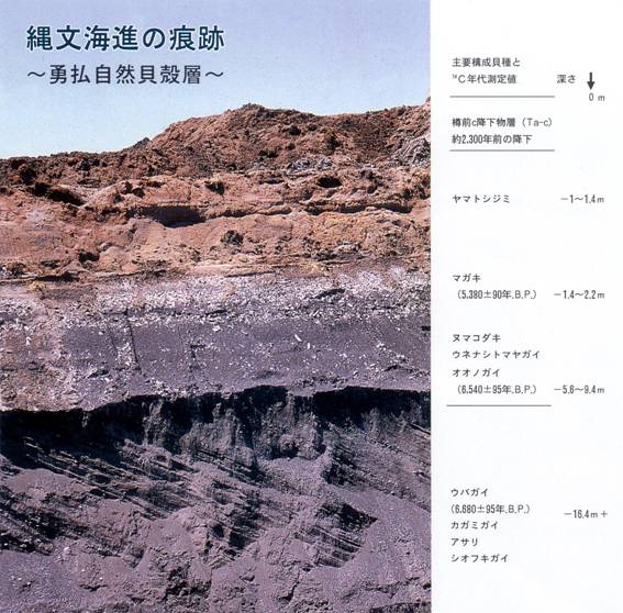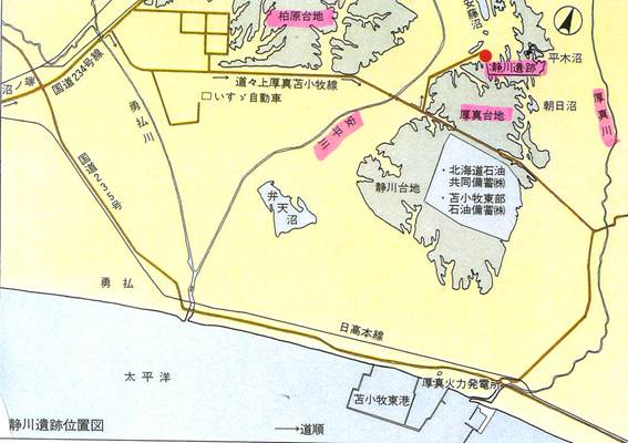 近郊では千歳市美々貝塚、美々貝塚北遺跡や現在の海岸線から18,5kmも離れた早来町東早来遺跡があります。